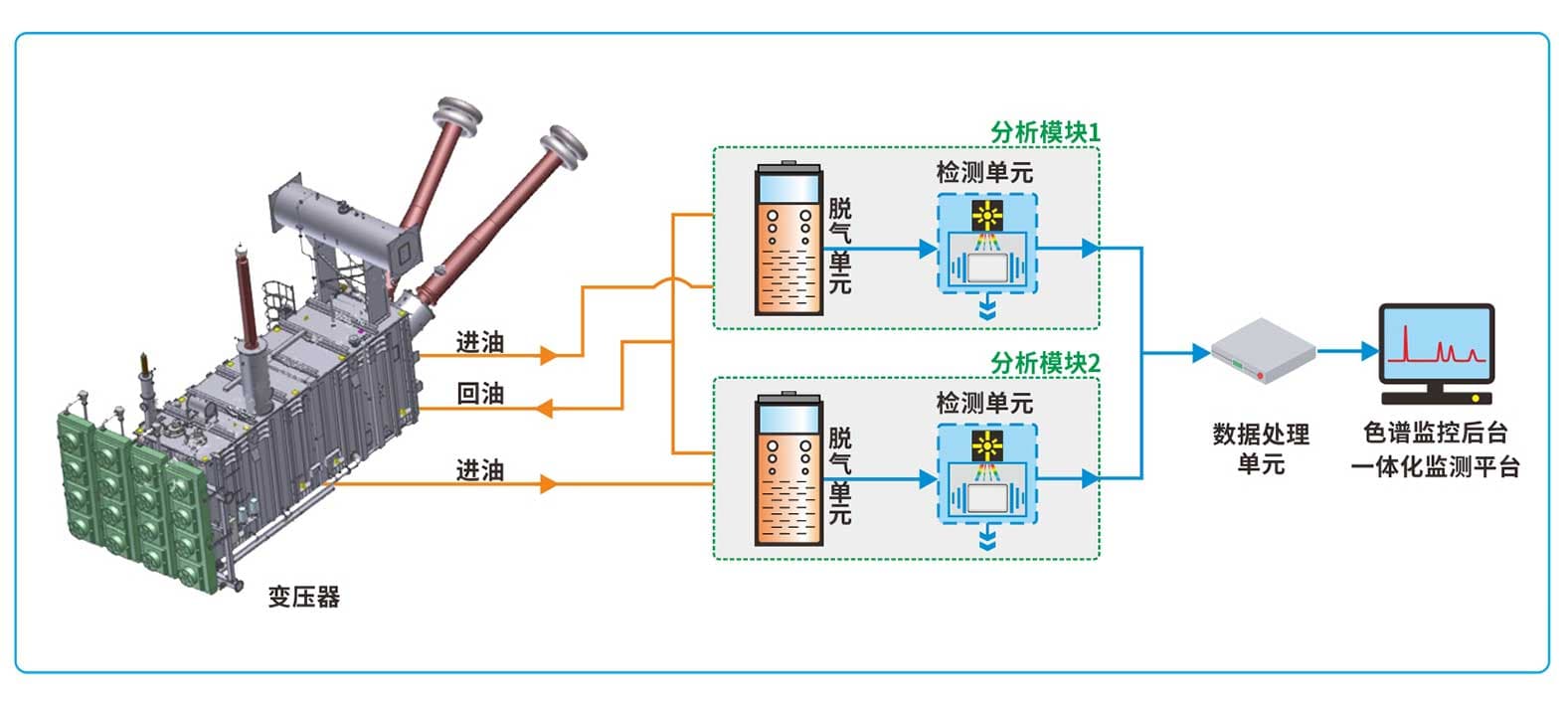 整套系統采用冗余模塊化設計,每套油樣采集與油氣分離檢測單元相互獨立工作,互不干擾,分別輸出乙炔檢測數據,一套檢測單元工作異常或退出時不影響其它模塊的運行。
